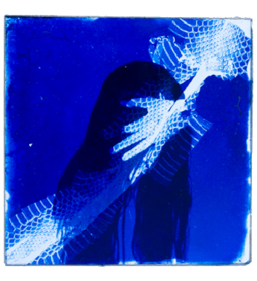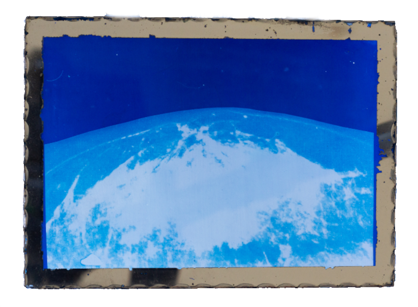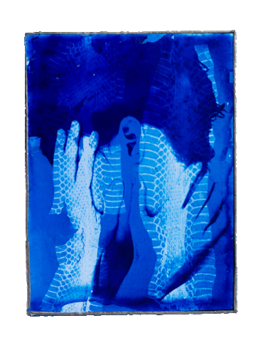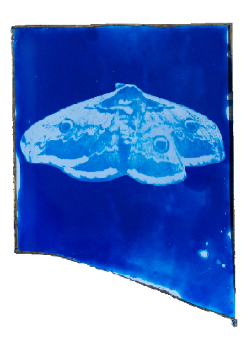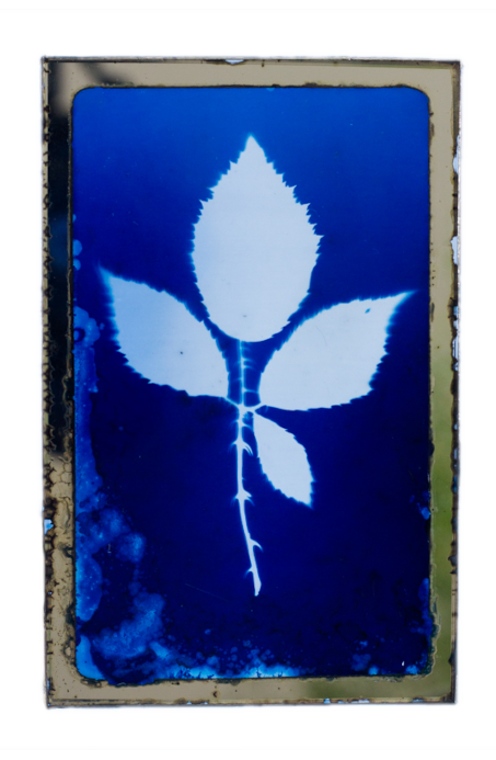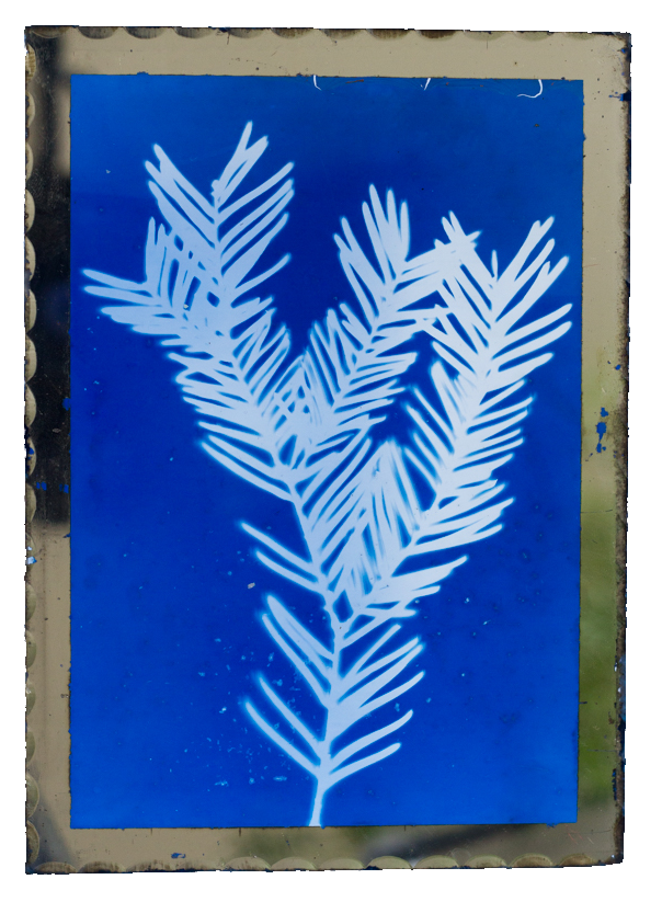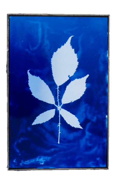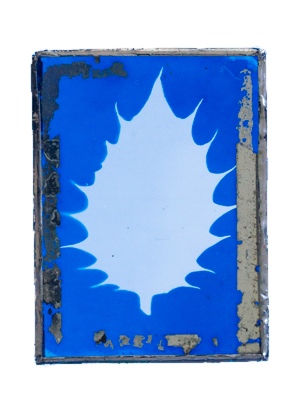 ongoing serie since 2022, cyanotype prints on glass. i used pieces of broken glass found in the street and charity shops, and weeds and all kind of trash from my daily life.